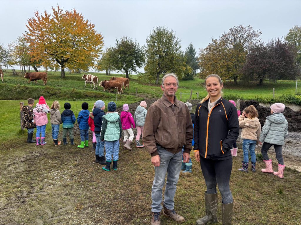 Am 15. Oktober 2025 durften die Klassen 1a, 1b und 2 mit ihren Lehrerinnen Anneliese Baier, Petra Weissbarth und Dorothea Regner-Grepmair einen sehr interessanten und kurzweiligen Vormittag auf dem Biobauernhof Fischl in Lindach bei Kirchberg verbringen.